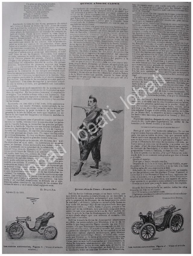 El famoso Payaso Ricardo BellNOTA DE PRENSA ANTIGUA ORIGINAL.FICHA TECNICA:.- Material: Papel.- Original.- Medidas: 36 X 27 Cms C/U.- 1 Hojas.- Condiciones: Mire la imagen.- No incluye marco.- L.I. ELMNDOILST/1897/T1.- No es una revistaNOTAS:.- Historiografia Mexicana antigua.- Noticias antiguas Mexicanas.- Notas de prensa antiguas.- Periodicos antiguos Mexicanos.- Epoca porfiriana.- Noticias del siglo 19