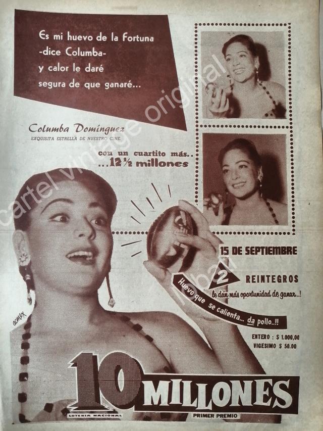 AVISO:No vendemos Loteria, esun cartel vintage.FICHA TECNICA:.- Material: Papel, Original.- Medidas: 37 x 27 Cms.- Condiciones: Buena..- No incluye marco.- L.I. LOTERIA NACIONAL 001 NOTAS: