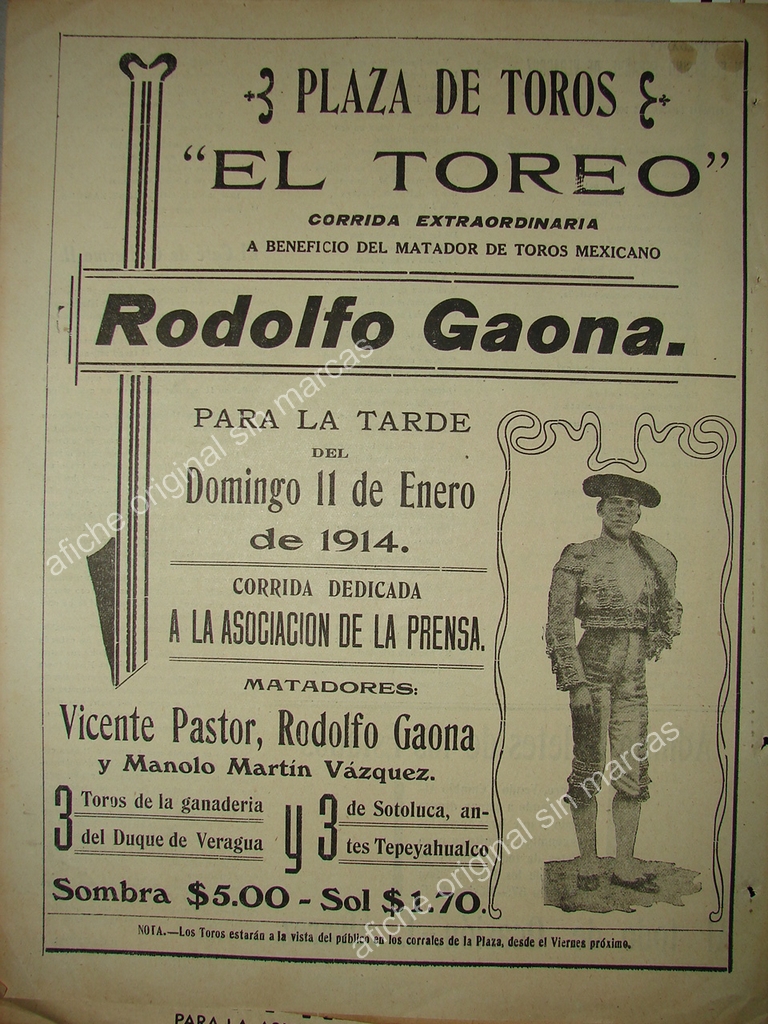 AVISO: FICHA TECNICA: .- Material: Papel, Original .- Medidas: 28 X 22 Cms .- Condiciones: Mire la imagen .- No incluye marco .- L.I. LT-078 NOTAS: Afiches antiguos de Tauromaquia