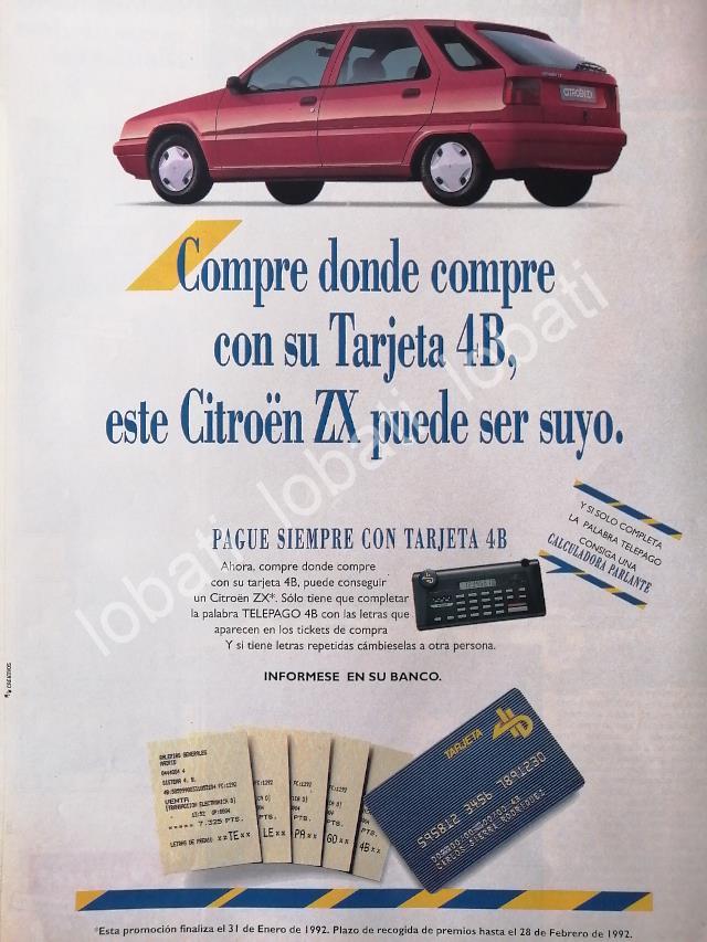 CARTEL ANTIGUO ORIGINAL DE DE AUTOS CITROEN ZX DIESEL 1991 /889