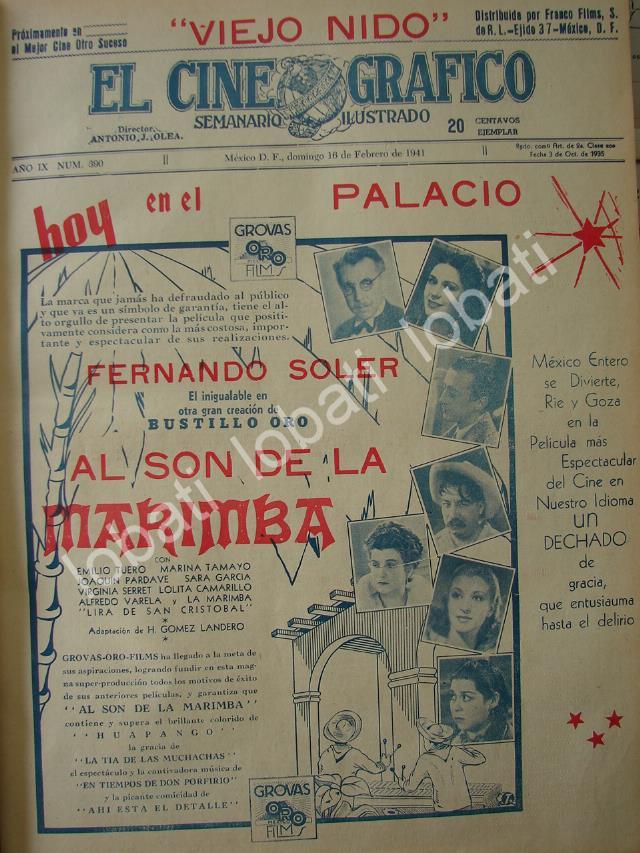 CARTEL ANTIGUO ORIGINAL DE ESTRENO DE LA PELICULA AL SON DE LA MARIMBA 1941