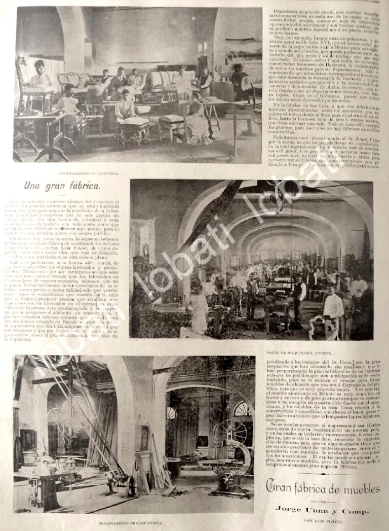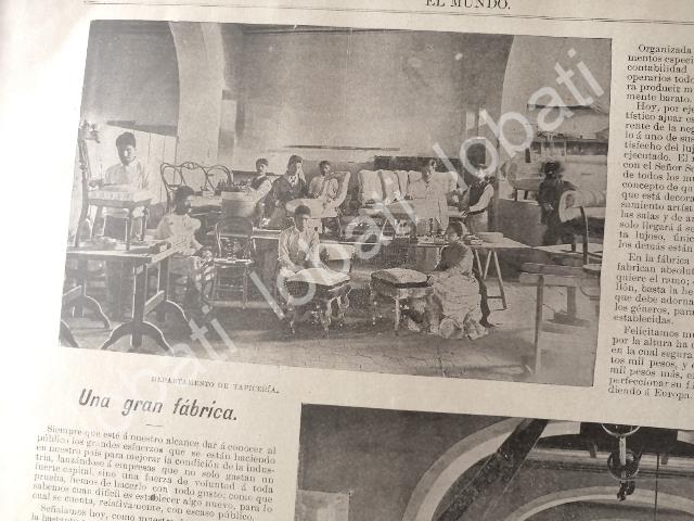NOTA DE PRENSA ANTIGUA ORIGINAL.Tan importante y de tal prestigio fueesta fabrica que se le dedico paginacompleta en esta publicacion, de talcalidad eran los muebles Unna, que aun hoy en dia se ven en las grandescasones, palacios de gobierno y lasMansiones de los mas acaudalados.FICHA TECNICA:.- Material: Papel.- Original.- Medidas: 36 X 27 Cms C/U.- 1 Hojas.- Condiciones: Mire la imagen.- No incluye marco.- L.I. ELMNDOILST/1895/T2.- No es una revistaNOTAS:.- Historiografia Mexicana antigua.- Noticias antiguas Mexicanas.- Notas de prensa antiguas.- Periodicos antiguos Mexicanos.- Epoca porfiriana