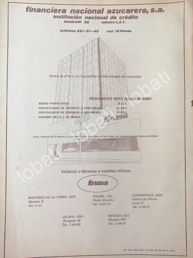 CARTEL ANTIGUO ORIGINAL DE FINANCIERA NACIONAL AZUCARERA (FINASA) 1974 /169. BANCOS