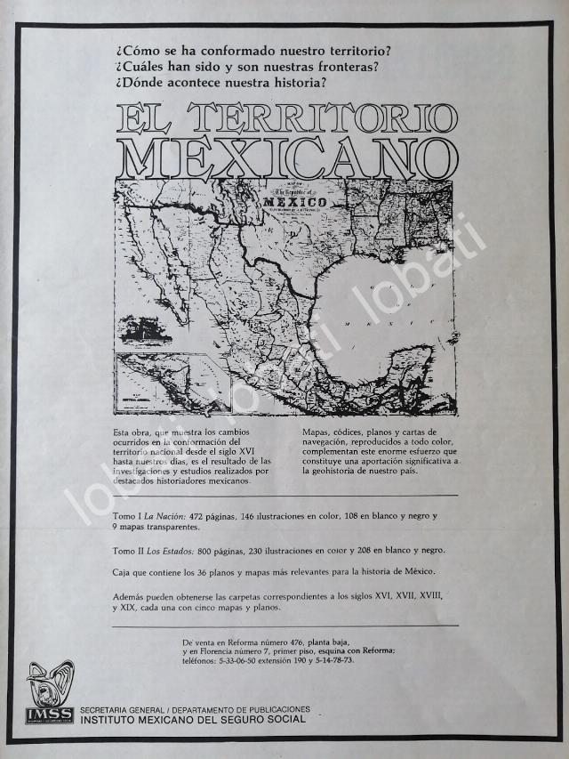 CARTEL ANTIGUO ORIGINAL DE IMSS PRESENTA EL LIBRO: EL TERRITORIO MEXICANO 1980 /61