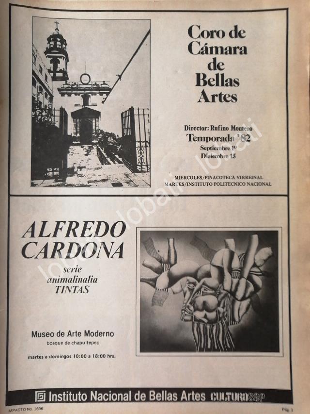 CARTEL ANTIGUO ORIGINAL DE INBA. EXPOSICION DE ALFREDO CARDONA Y MAS 1982