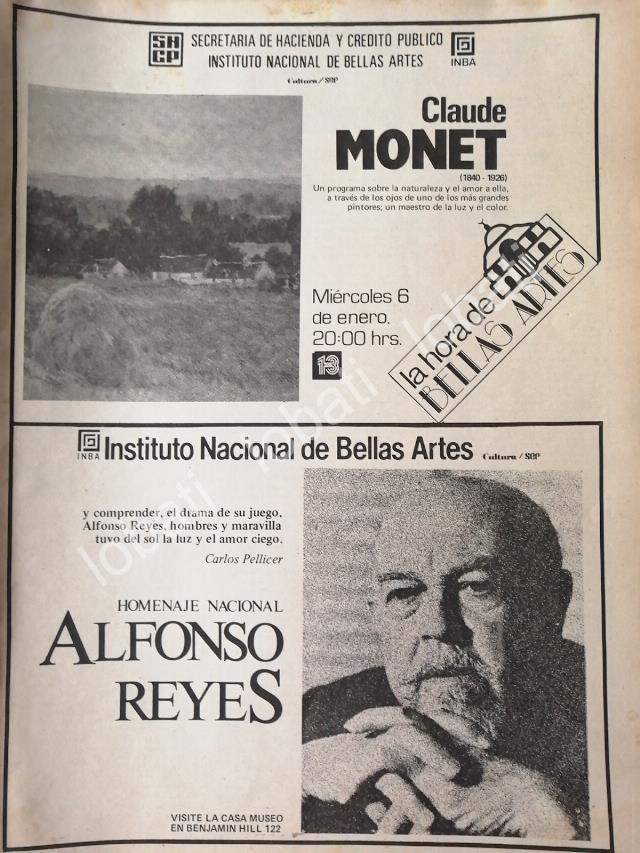CARTEL ANTIGUO ORIGINAL DE INBA. HOMENAJE NACIONAL A ALFONSO REYES 1982 Y MAS
