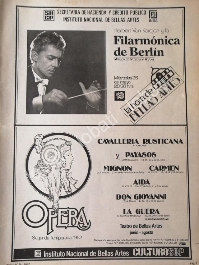 CARTEL ANTIGUO ORIGINAL DE INBA PRESENTA. CLAUDE MONET Y TEMPORADA DE OPERA 1982