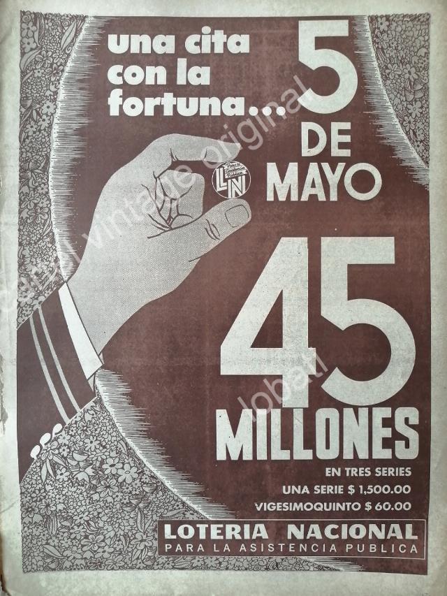 CARTEL ANTIGUO ORIGINAL DE LA LOTERIA NACIONAL 1960s /43