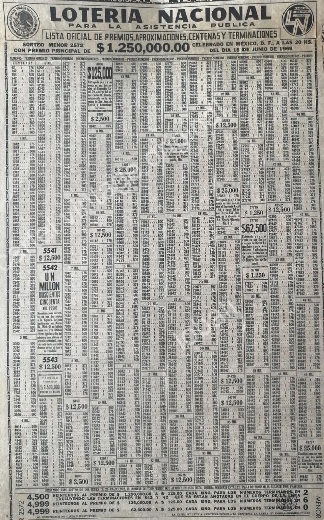 CARTEL ANTIGUO ORIGINAL DE LISTA DE PREMIOS LOTERIA NACIONAL 18 JUNIO 1969 /127