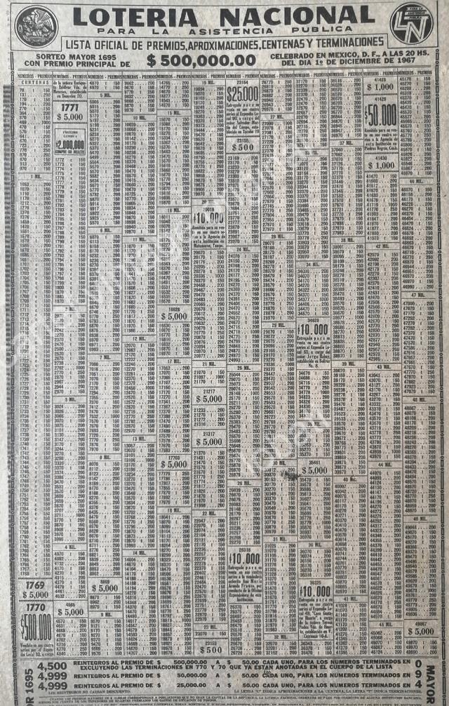 CARTEL ANTIGUO ORIGINAL DE LISTA DE PREMIOS LOTERIA NACIONAL 8 AGOSTO 1969 /132