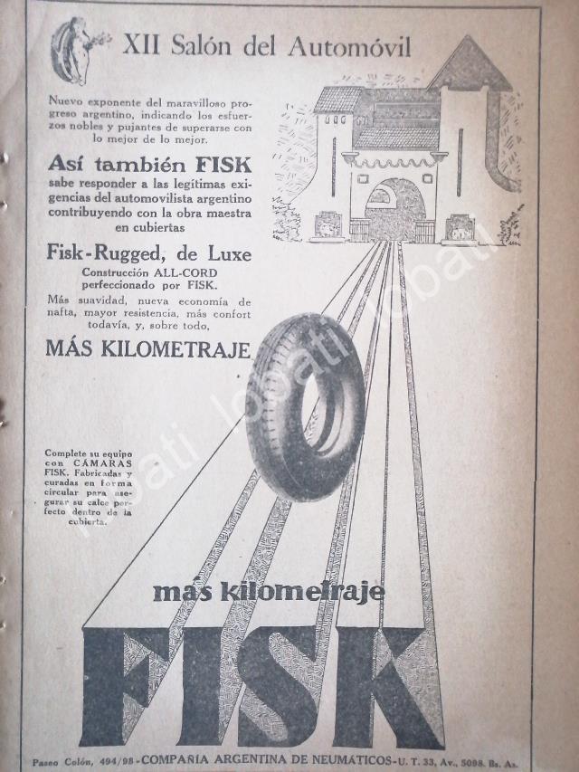 CARTEL ANTIGUO ORIGINAL DE LLANTAS FISK 1926 /9