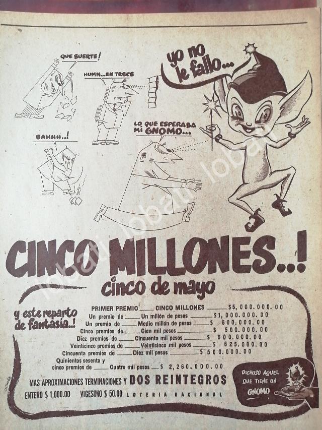 CARTEL ANTIGUO ORIGINAL DE LOTERIA NACIONAL 1952 EL GNOMO DE LA SUERTE /159
