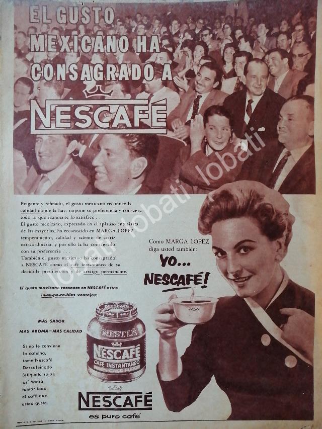 CARTEL ANTIGUO ORIGINAL DE MARGA LOPEZ Y CAFE NESCAFE 1958 /CF66 FEP / RARO