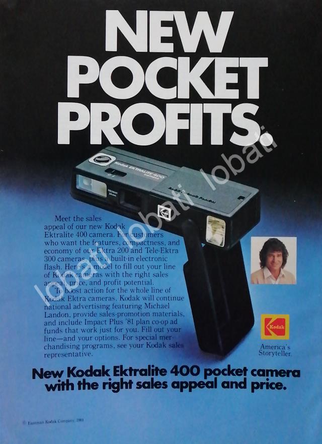 CARTEL ANTIGUO ORIGINAL DE MICHAEL LANDON Y CAMARAS KODAK EKTRALITE 400 1941 /414 FEP