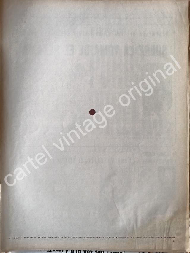 Una de las publicidades mas raras que hemosvisto a lo largo de decadas, solo un puntoasi es, un punto, algo muy inusual ya queen ese entonces la publicidad era demasiadopara desperdiciarla asi, pero Cigarros Obregonera algo excentrico y acostumbraba ese tipo de cosas.AVISO:No vendemos Tabaco, esun cartel vintage.FICHA TECNICA:.- Material: Papel, Original.- Medidas: 36 X 26 Cms.- Condiciones: Buena..- No incluye marco.- L.I. TABACO-001 NOTAS:Rodolfo Castillo Carmona.Cigarros Obregon S.A