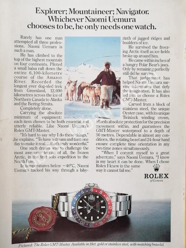 CARTEL ANTIGUO ORIGINAL DE NAOMI UEMURA Y RELOJES ROLEX OYSTER PERPETUAL 1980s / 79/ FEP