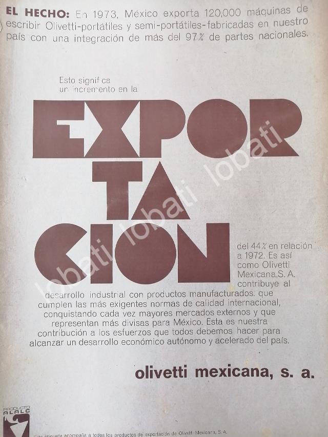 CARTEL ANTIGUO ORIGINAL DE OLIVETTI MEXICANA S.A 1973 /563