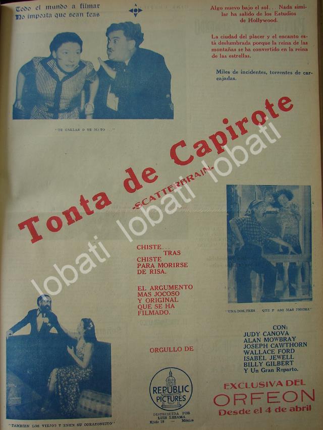 CARTEL ANTIGUO ORIGINAL DE PELICULA. TONTA DE CAPIROTE 1941 (SCATTERBRAIN) RARO