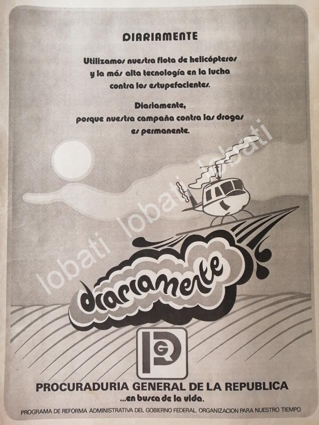 Aya a inicios de los años 80s la PGRsobre todo la Policia Judicial estabapasando por una de sus peores crisis de confianza, la Policia Judicial erasinomino de abuso de poder, torturas e irregularidades, en 1981 siendo lostiempos electorales, PGR saca una serie de publicidades para aminorar esa crisis, obviamente como fineselectoreros.FICHA TECNICA:.- Material: Papel .- Original.- Medidas: 35 x 25 Cms.- Condiciones: Mire la imagen.- No incluye marco.- L.I. GOBIERNO-001NOTAS:Publicidad de GobiernoPublicidades retro de GobiernoPublicidades vintage de GobiernoTienda de publicidad antigua