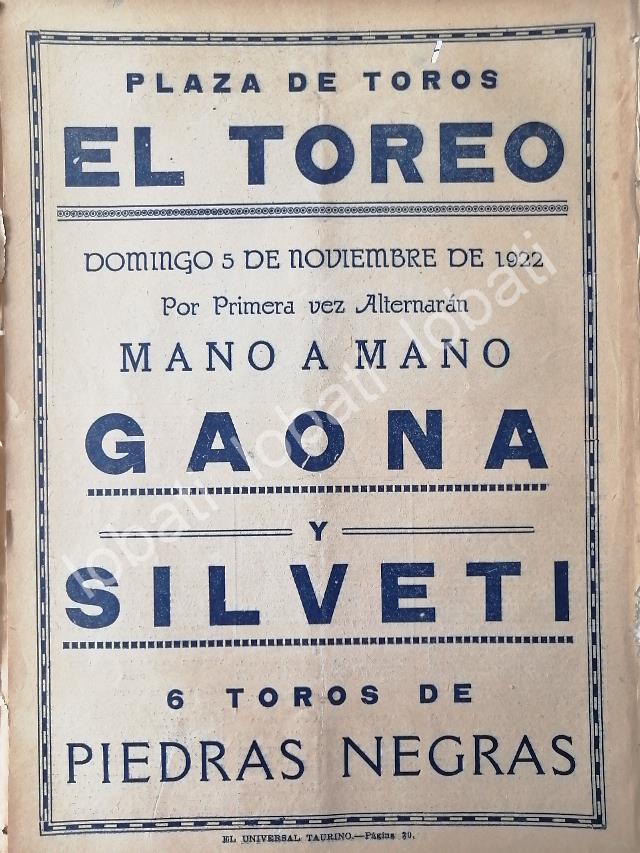 FICHA TECNICA:.- Material: Papel.- Original.- Medidas: 29 x 20 Cms.- Condiciones: Mire la imagen.- No incluye marco.- L.I. EMPRESAS-001NOTAS:.- Afiches de toros.- Carteles antiguos de toros.- tauromaquia.- Publicidad antigua de toros