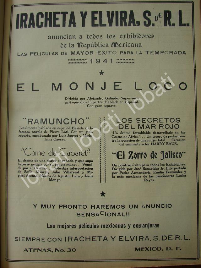 CARTEL ANTIGUO ORIGINAL DE PRODUCTORA DE CINE IRACHETA Y ELVIRA S.A 1941 /N66