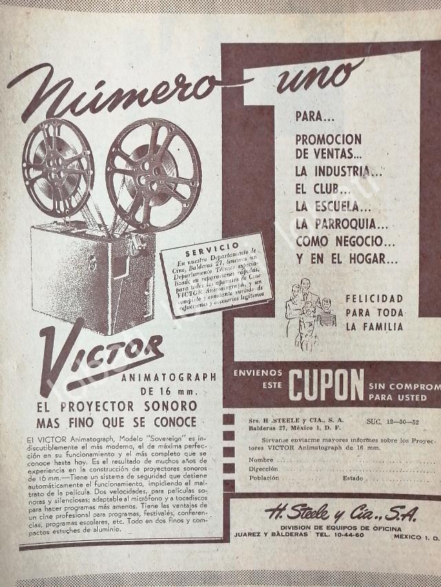 CARTEL ANTIGUO ORIGINAL DE PROYECTOR VICTOR ANIMATOGRAPH 16mm 1952 /14
