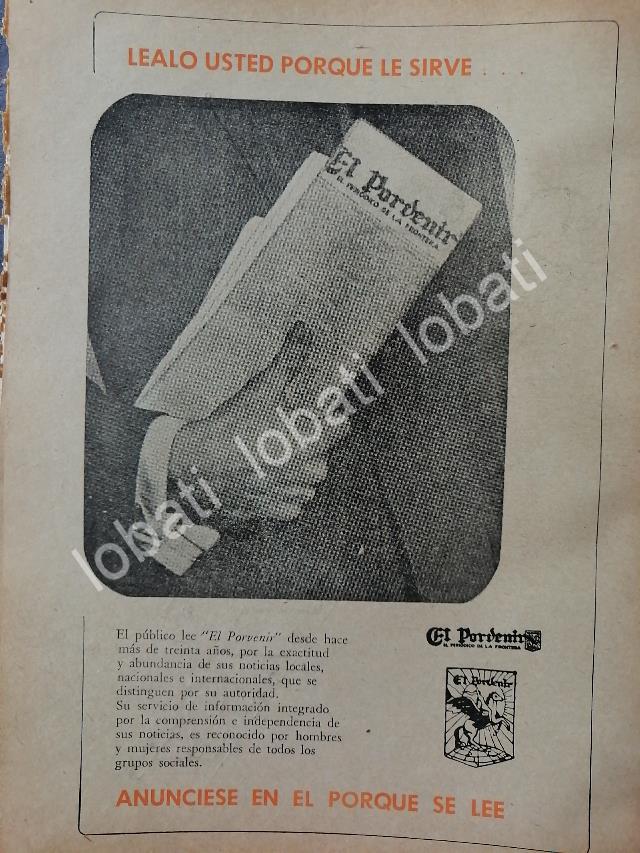 CARTEL ANTIGUO ORIGINAL DE PUBLICIDAD DEL DIARIO EL PORVENIR 1962 /N76 MONTERREY