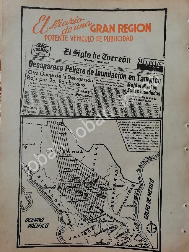CARTEL ANTIGUO ORIGINAL DE PUBLICIDAD DEL PERIODICO EL SIGLO DE TORREON 1950s /N77