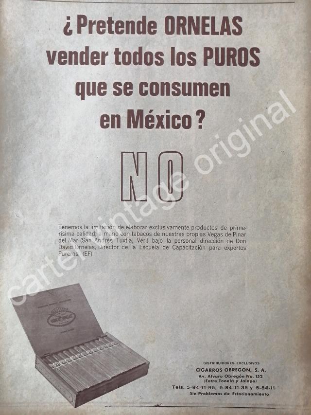 CARTEL ANTIGUO ORIGINAL DE PUROS ORNELAS 1972 CIGARROS OBREGON /6