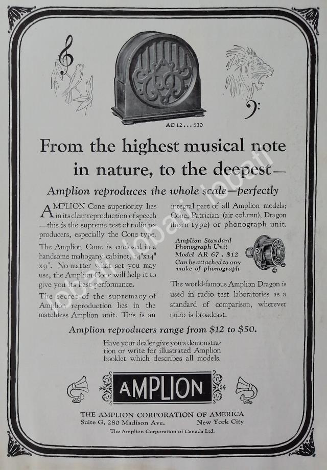 CARTEL ANTIGUO ORIGINAL DE RADIO AMPLION AC12 1929 / 114 SUPER RARO