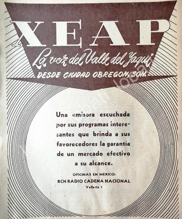 CARTEL ANTIGUO ORIGINAL DE RADIO DIFUSORA XEAP. CD. OBREGON SONORA 1952 /54