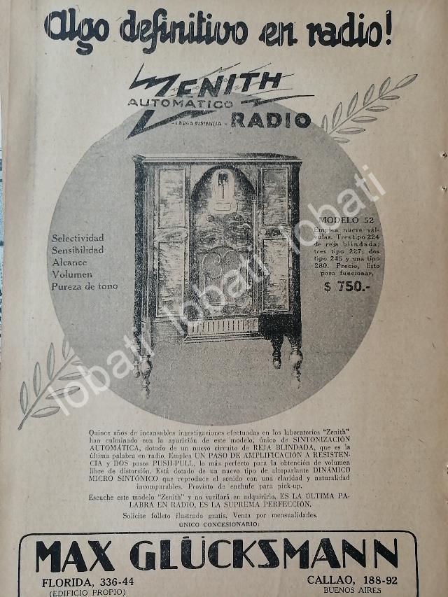 CARTEL ANTIGUO ORIGINAL DE RADIOS ZENITH 52 1929 /312