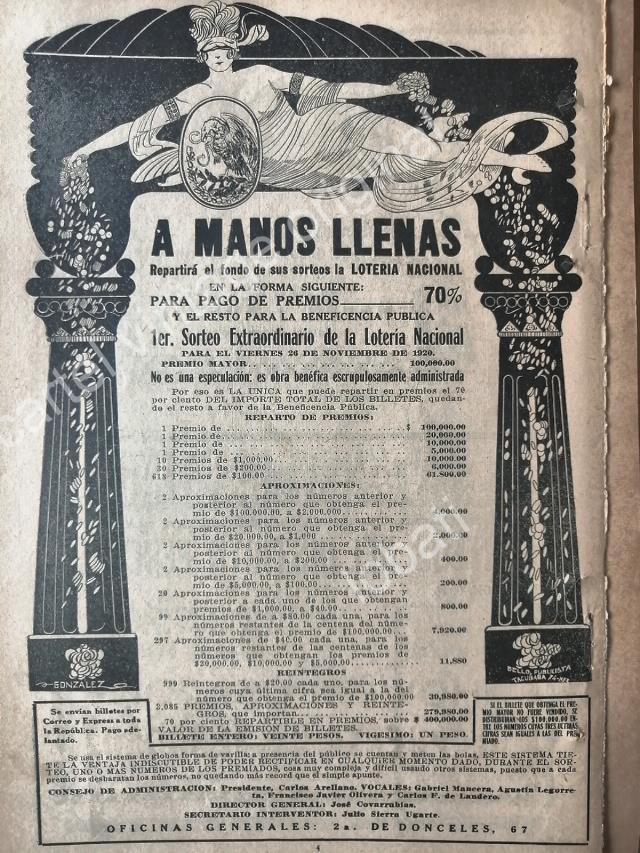 A diferencia de casi todas las publicidades de la loteria, esta etapa de entre 1920-1921se caracterizo por publicar ahi mismo los nombres del consejo Administrativo, y algoaun mas raro, se justificaba el ingreso deese sorteo sin dejar lugar a especular, yaque en esa epoca habia un pleito entre dosfacciones, conservadores y liberales, estosultimos eran los que estaban en el consejo y asi lo hacia saber Don. Gabriel Mancera.AVISO:No vendemos Loteria, esun cartel vintage.FICHA TECNICA:.- Material: Papel.- Original.- Medidas: 25 X 17 Cms +-.- Condiciones: Mire la imagen.- No incluye marco.- L.I. LOTERIA NACIONAL 001NOTAS:.- Afiches antiguos de loteria nacional ..- Afiches vintage loteria nacional ..- Publicidad antigua de la Loteria Nacional .