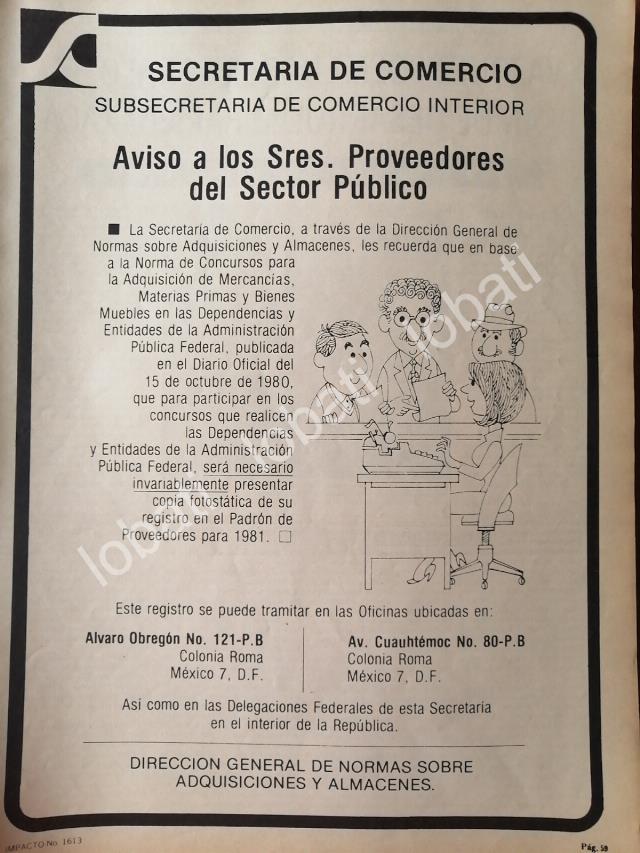 CARTEL ANTIGUO ORIGINAL DE SECRETARIA DE COMERCIO 1980 PROVEEDORES /34