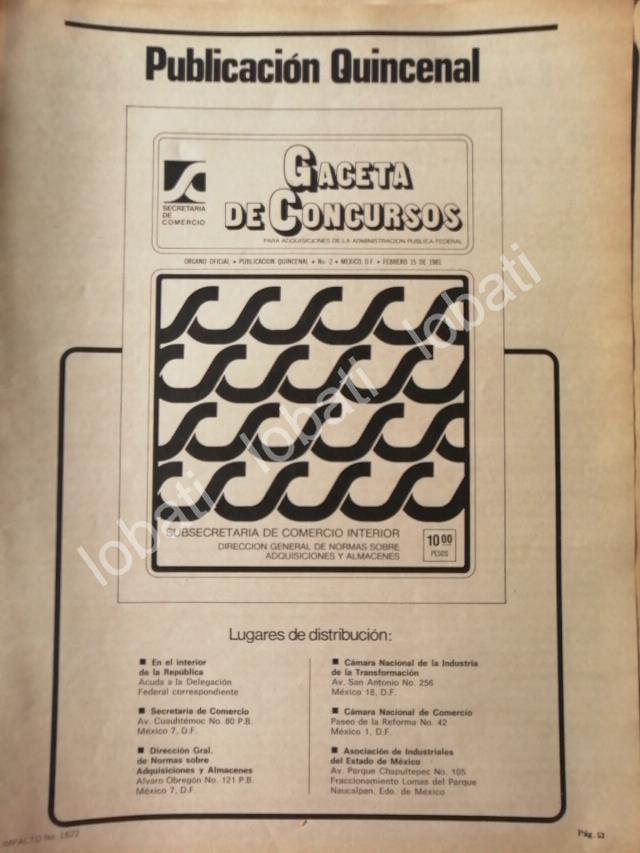 CARTEL ANTIGUO ORIGINAL DE SECRETARIA DE COMERCIO 1981 GACETA DE CONCURSOS /27