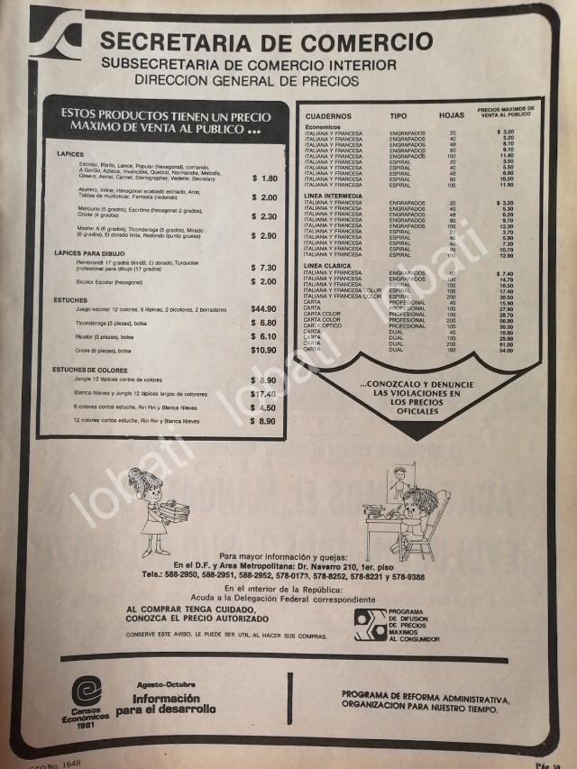 CARTEL ANTIGUO ORIGINAL DE SECRETARIA DE COMERCIO 1981 UTILES ESCOLARES /24