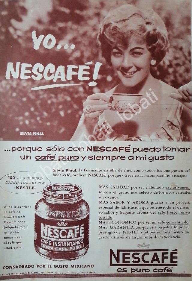 CARTEL ANTIGUO ORIGINAL DE SILVIA PINAL Y CAFE NESCAFE 1960 /CF57 / FEP