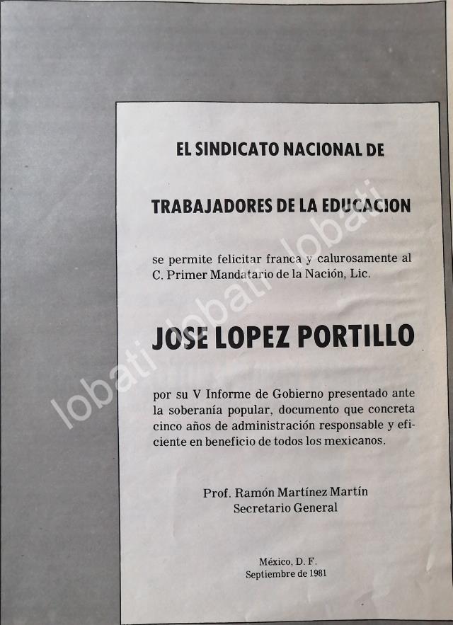 CARTEL ANTIGUO ORIGINAL DE SINDICATO DE MAESTROS FELICITA A JOSE LOPEZ PORTILLO 1981 /69