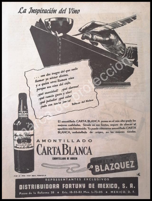CARTEL ANTIGUO ORIGINAL DE VINO AMONTILLADO CARTA BLANCA 1946 /RARO
