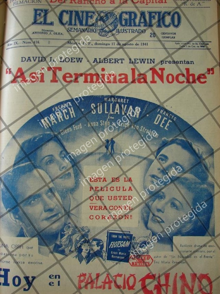 Que es lo que estamos ofreciendo !!Afiche o cartel publicitario originalrescatado de publicación de ese añono es un loby card tradicional.FICHA TÉCNICA: MUY RAROOriginal: So Ends Our Night 1941. Loby CardSegunda Guerra Mundial.- Material: Papel.- Época: 1941.- Original..- Medidas: 38 x 27 Cms.- Condiciones: Mire la imagen.- No incluye marco.- L.I. ELCGR-001.- No es un Loby card.- No es una película, es cartel.- Contiene otras notas al reverso.- El original no tiene marcas de aguani cuadriculaReferencias:Publicidad de empresas MexicanasPublicidades retro de cine MexicanoPublicidades vintage de cineTienda de publicidad antigua de cinePublicidad antigua de CineCarteles antiguos de Cine originales.