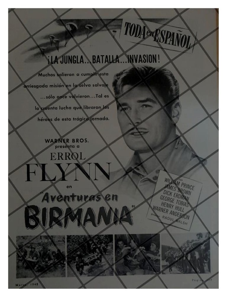 Que es lo que estamos ofreciendo !! Afiche publicitario retro original de revista esa epoca, no es un loby card tradicional de cine. . FICHA TECNICA: Titulo original: Objective Burma Segunda Guerra Mundial . Cine Actrices Actores Artistas . .- Material: Papel .- Original: Si .- Hojas: 1 .- Medidas: 30 X 22 Cms +- .- Condiciones: Mire la imagen .- No incluye marco .- L.I. CINE-01 .- No es periodico completo. .- Contiene otras notas .- Las hojas originales no tienen marcas de cuadricula ni leyendas . Referencias: .- Carteles retro de Cine .- Publicidad antigua de Cine .- Publicidad retro de Cine .- Recortes de periódicos Mexicanos .- Tienda de Historiografia antigua .- Carteleras de Cine retro .- Cine vintage