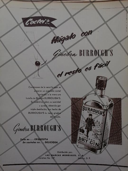 CARTEL PUBLICIDAD ANTIGUA GINEBRA BURROUGHS 1951 VINOS 614