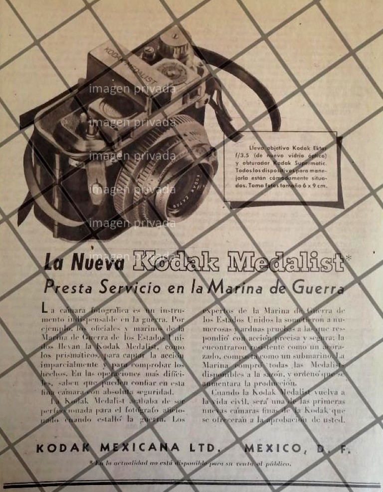 CARTEL PUBLICITARIO ANTIGUO CAMARAS KODAK MEDALIST 1944