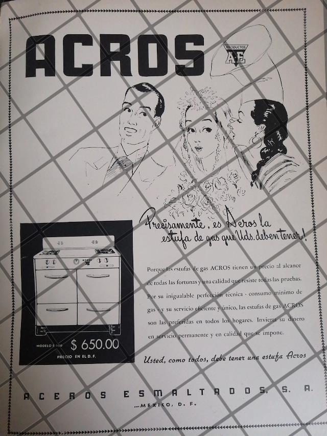 CARTEL PUBLICITARIO ANTIGUO LAS PRIMERAS ESTUFAS ACROS 1948 3
