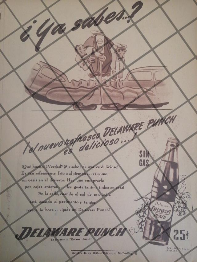 CARTEL PUBLICITARIO RETRO REFRESCOS DELAWARE PUNCH 1948