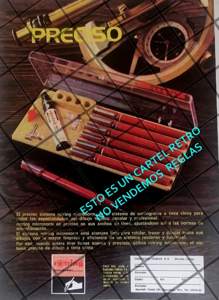 CARTEL PUBLICITARIO RETRO REGLAS ROTRING 1982 -2