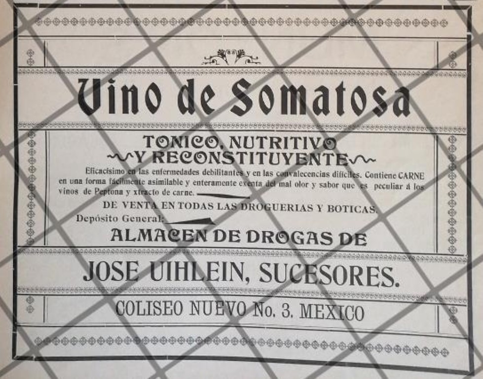 CARTEL PUBLICITARIO VINO SOMATOSA. BOTICA. JOSE UIHLEIN 1906