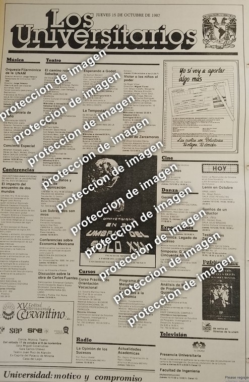 Sé el primero en valorar “CARTEL PUBLICITARIO VINTAGE, CARTELERA CULTURAL UNAM, LOS UNIVERSITARIOS OCT 1987 /ESCUELAS /2”
