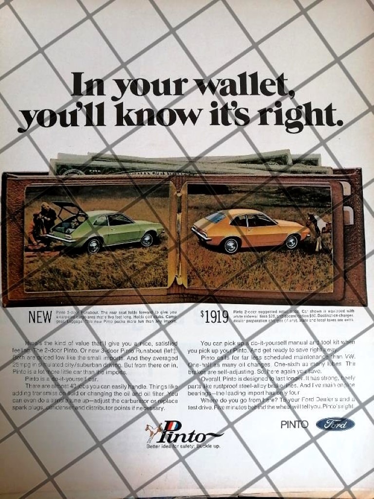 CARTEL RETRO AUTOS FORD PINTO 1971 -1082 /RARO