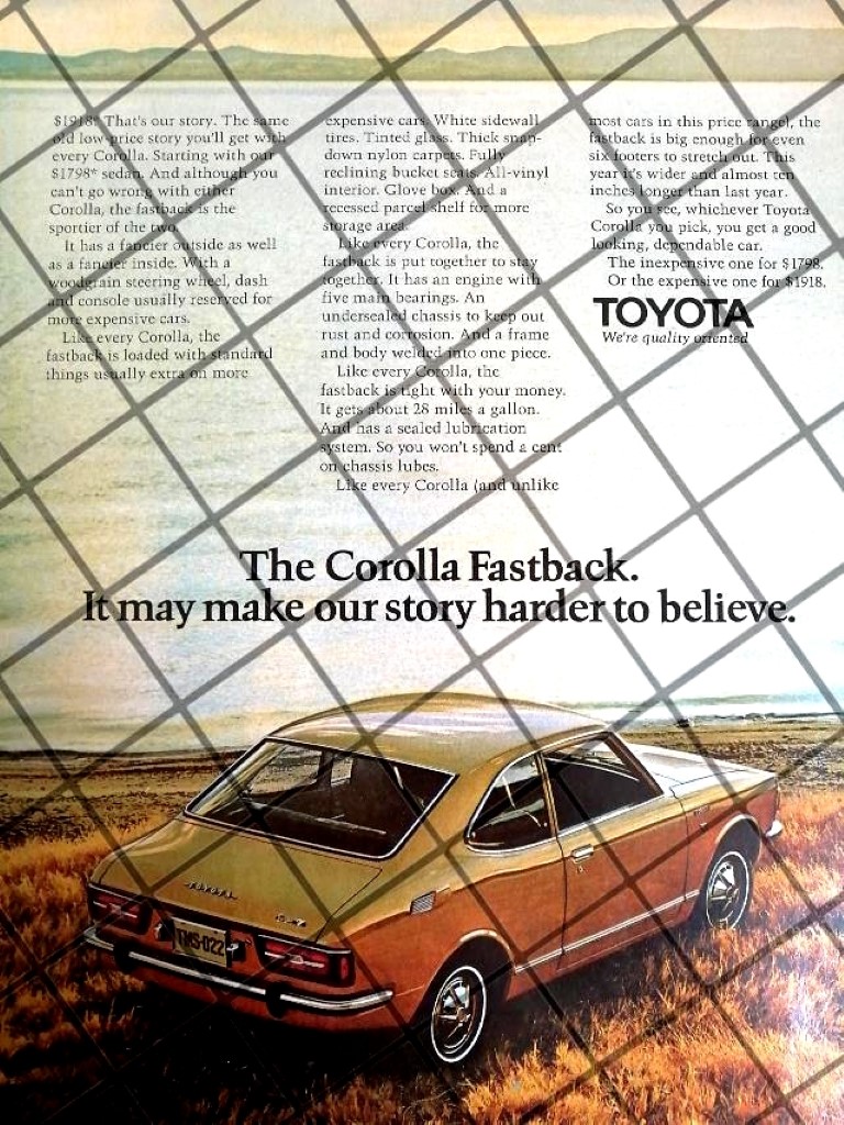 CARTEL RETRO AUTOS TOYOTA COROLLA FASTBACK 1970 -1086